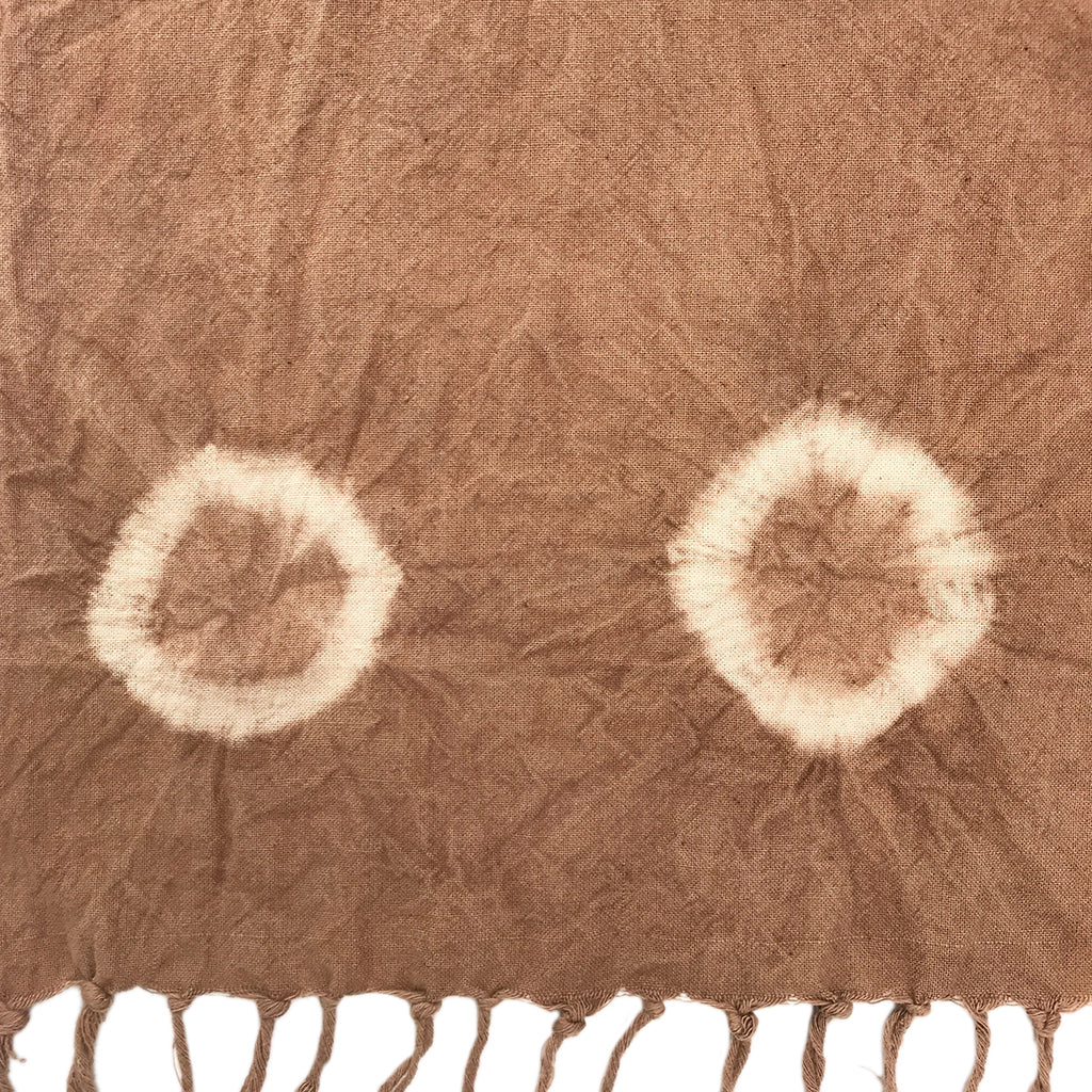 This scarf is made of natural cotton and hand dyed from almond shells. The perfect combination of sustainable and on trend design!