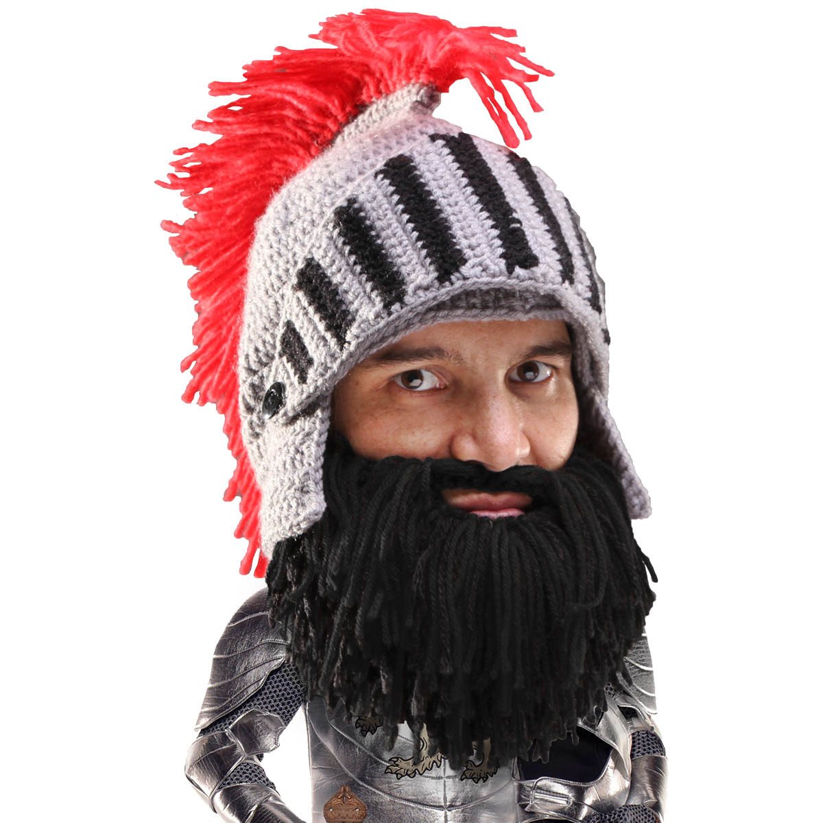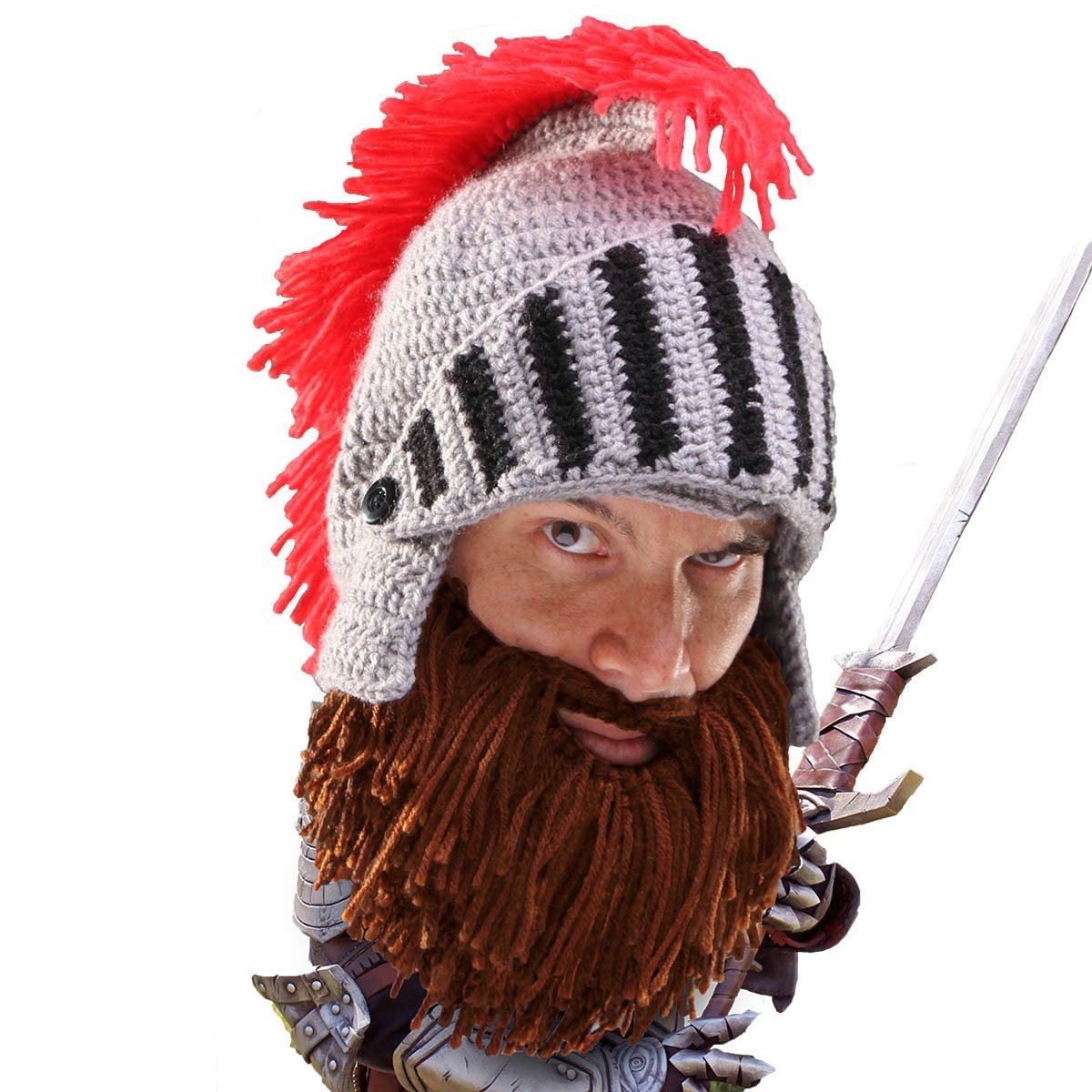 - Knight knit helmet w/ movable visor and Barbarian beard