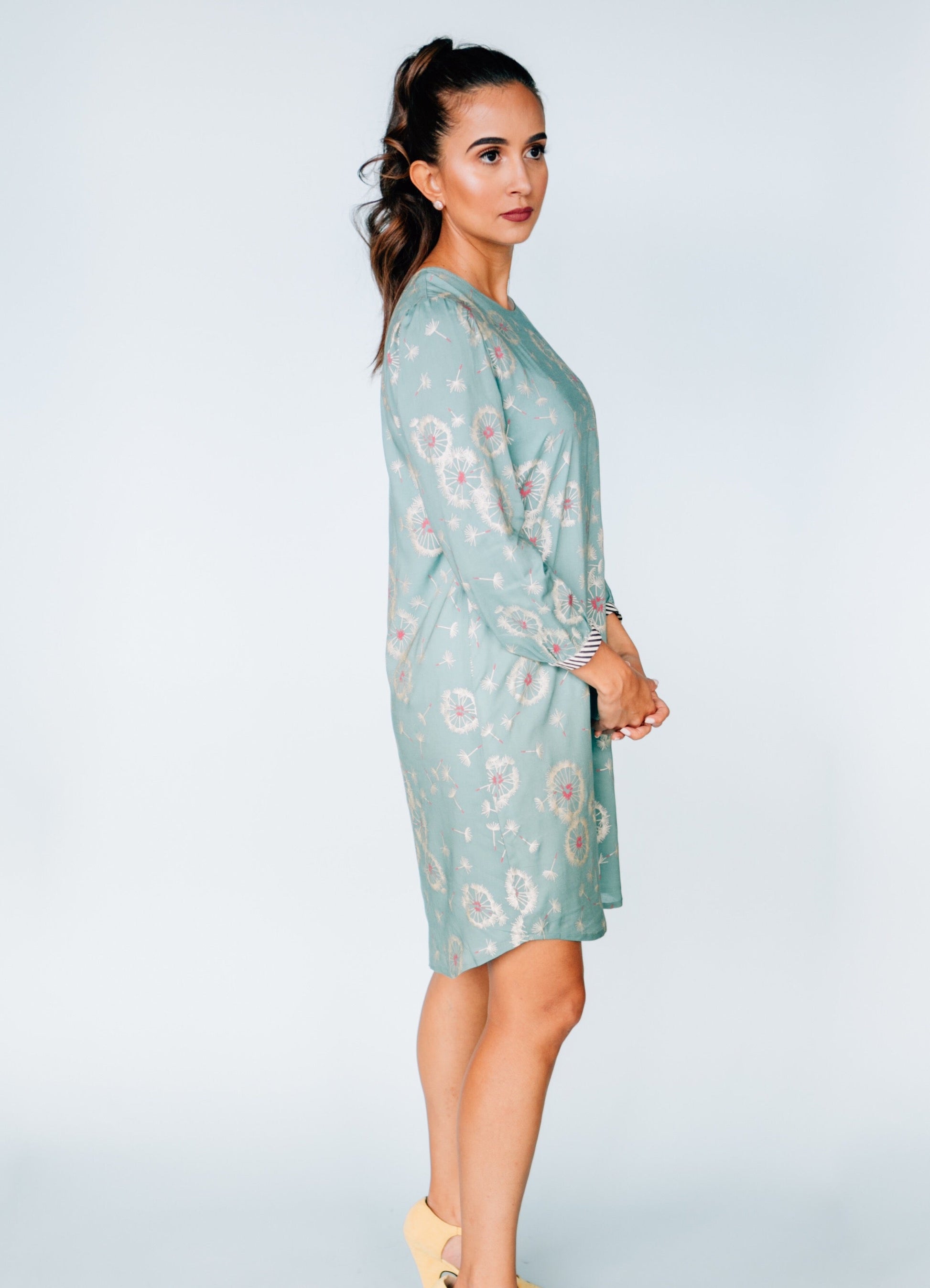 The Dancing Dandelion makes getting dressed a breeze! Its soft fabric slips on like a nightgown and the playful print gives just the right balance of polish and eye-catching personality.