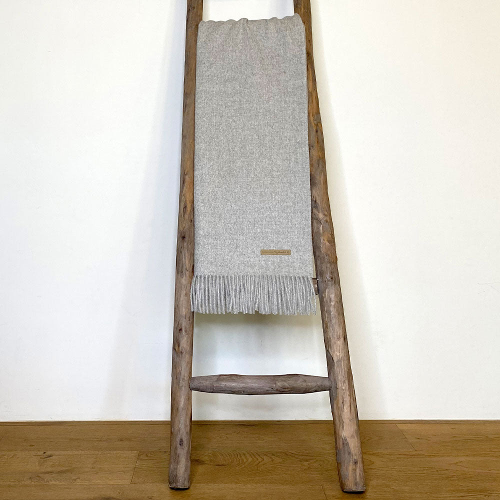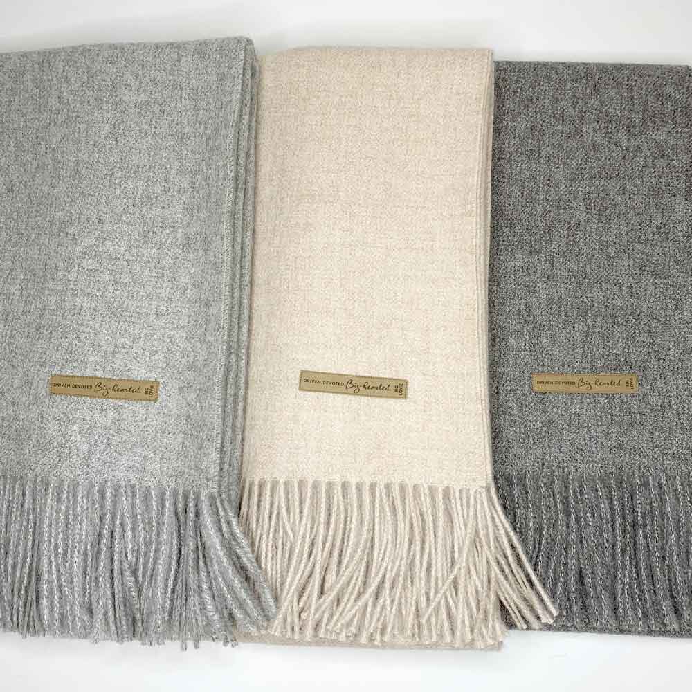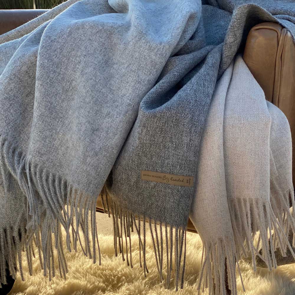 The KJ blanket is the new quintessential classic throw. Gorgeous heathered coloring is the signature of this rich, midweight and soft woolen blanket. Its personality is purposeful and giving. Made of 100% Alpaca Eco it is rich in color, texture and softness.