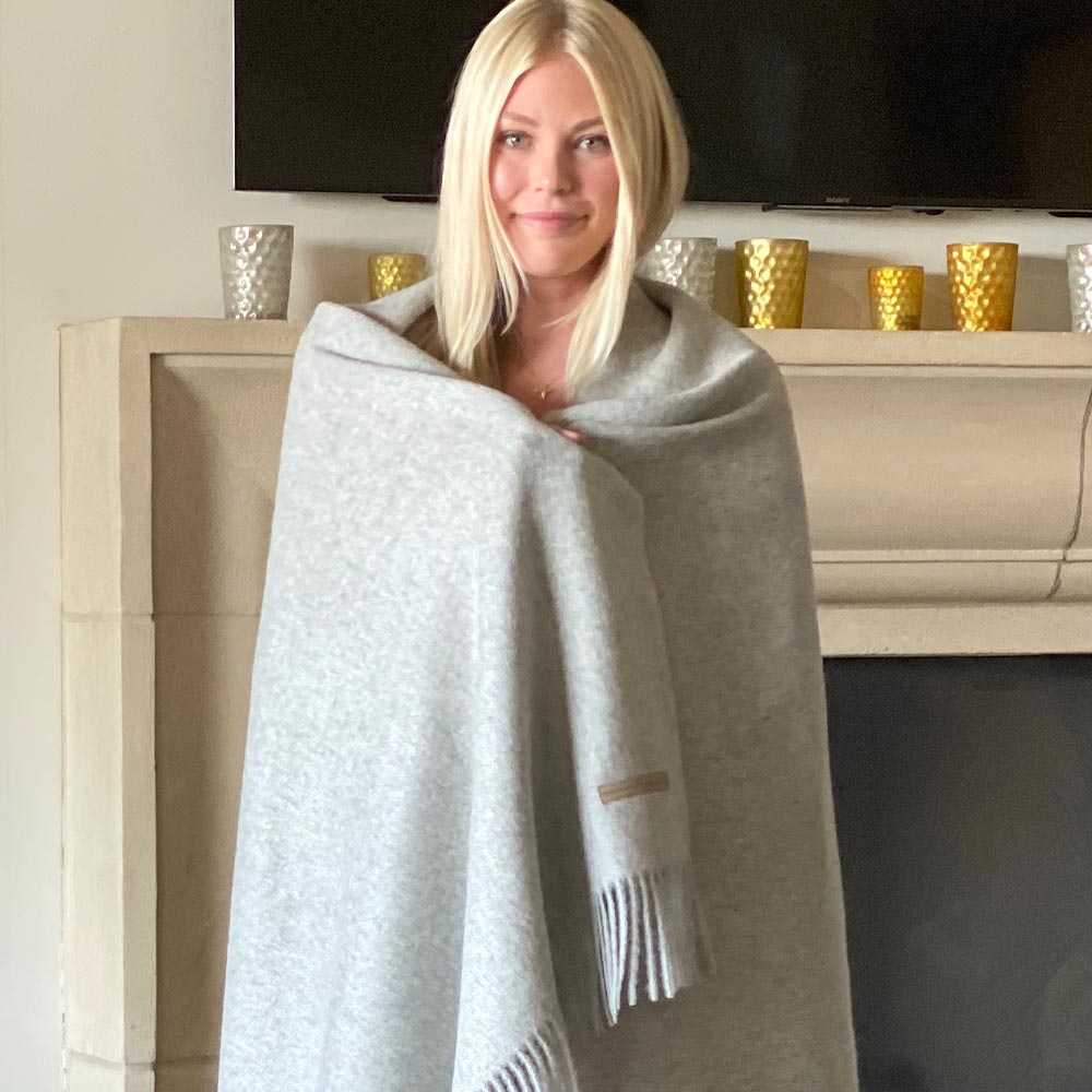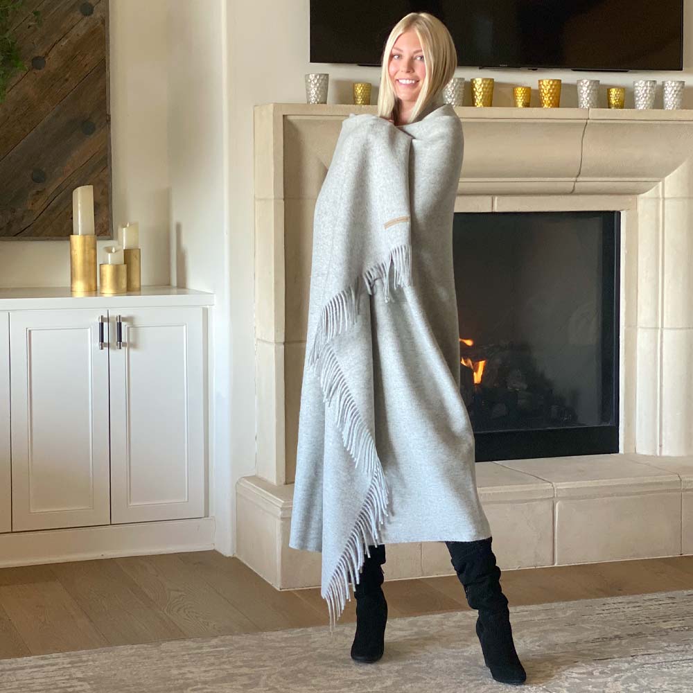 SIZE: 70” x 51” + 4” fringe. 680 grams.