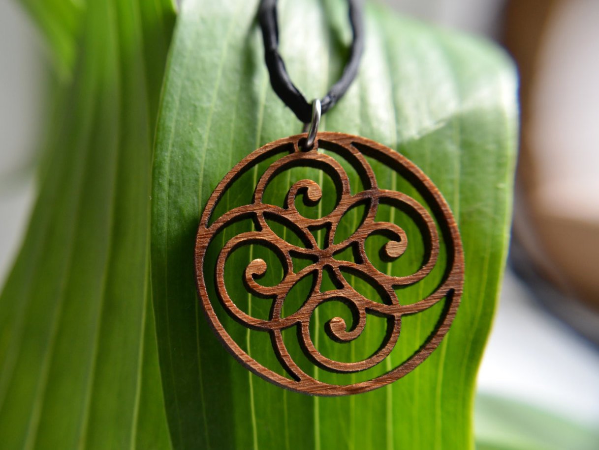 Spiral Circle Pendant in cherry wood. Available in two sizes, please make selection at checkout. Adjustable 16" - 18" 1mm leather cord with lobster clasp. The designs in this collection are inspired by architectural ornamentation. Whether representations of nature or geometrical designs, these embellishments form the inspiration for these pendant, earring and bracelet designs.
