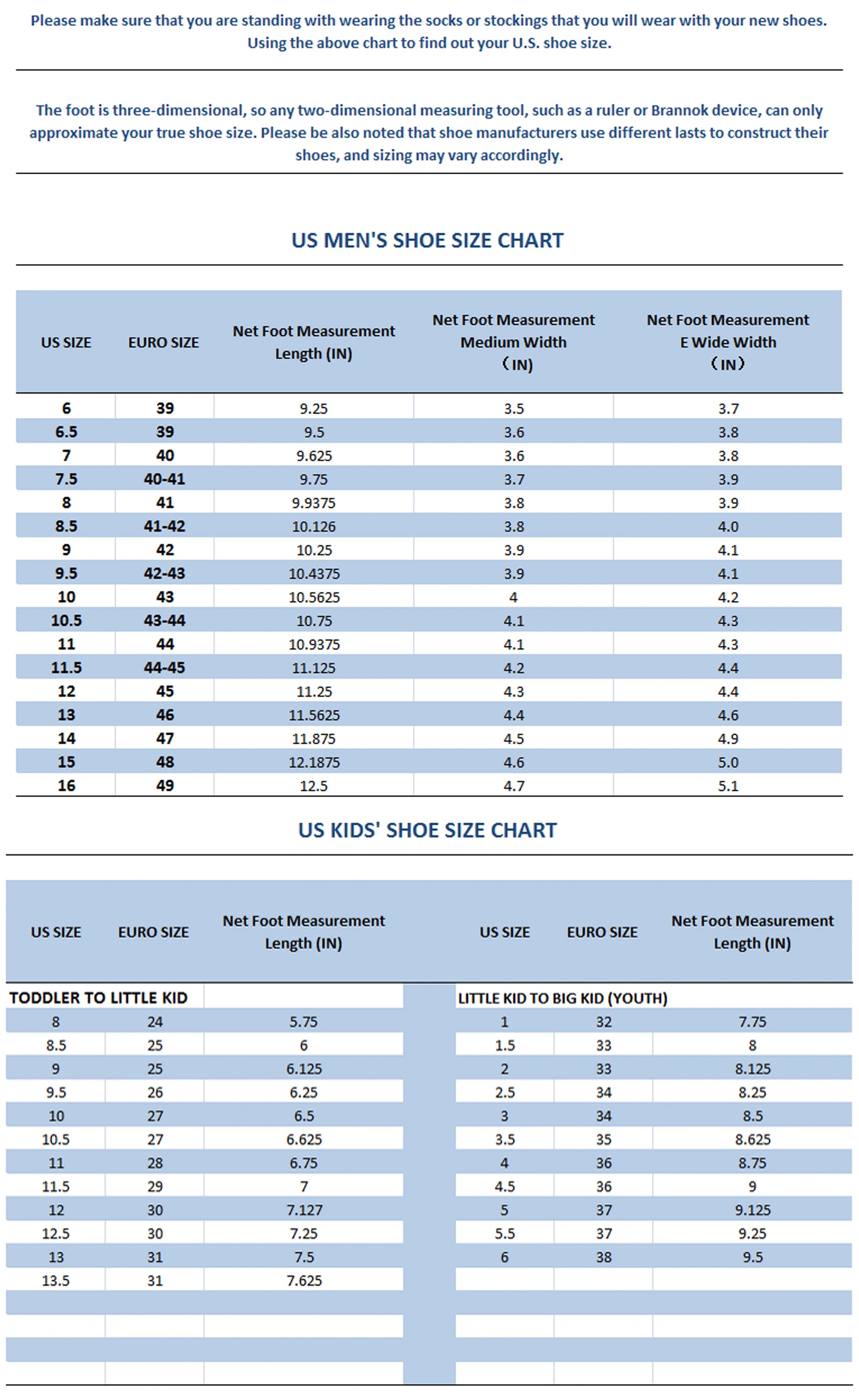 6.5 to 18 (Regular Width [D] or Wide Width [EE])